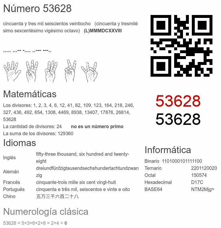 Si conoce algo interesante sobre el número 53628 o cualquier número natural (entero positivo), por favor escríbanos.Número 53 628 en otras unidades