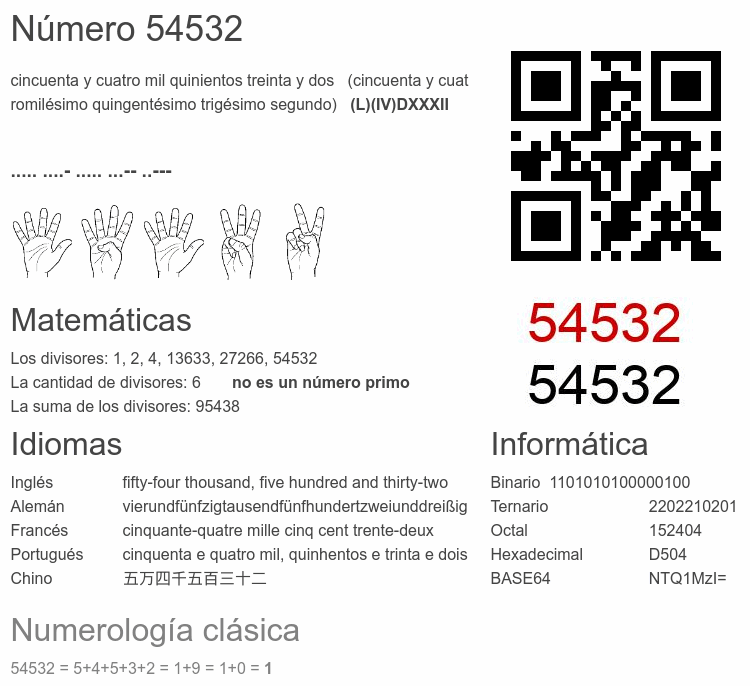Si conoce algo interesante sobre el número 54532 o cualquier número natural (entero positivo), por favor escríbanos.Número 54 532 en otras unidades