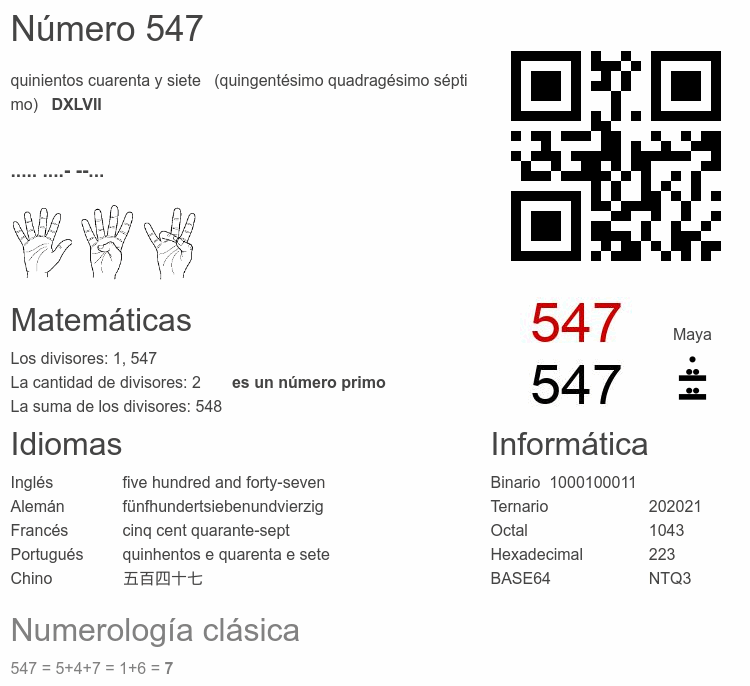 Curiosidades del número 547