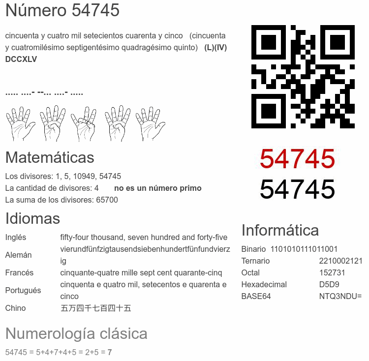 Curiosidades del número 54745