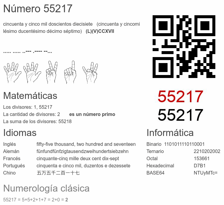Curiosidades del número 55217