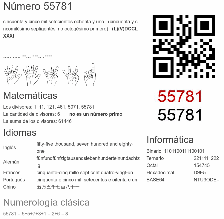 Curiosidades del número 55781