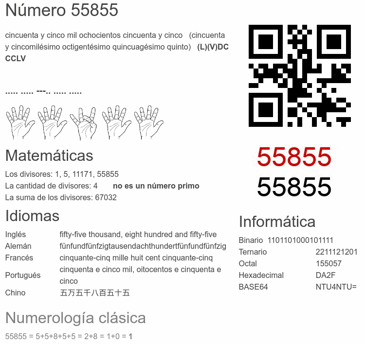 Curiosidades del número 55855