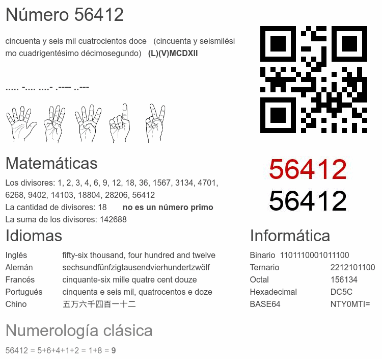 Curiosidades del número 56412