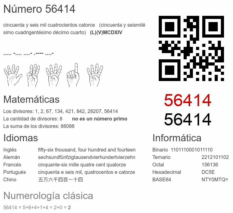 Curiosidades del número 56414