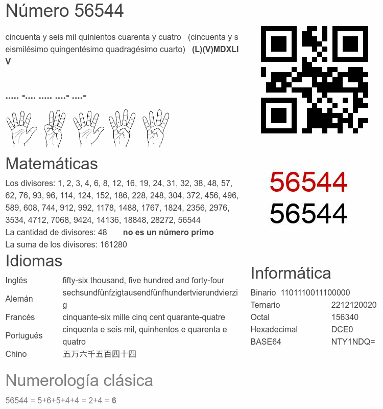 Curiosidades del número 56544