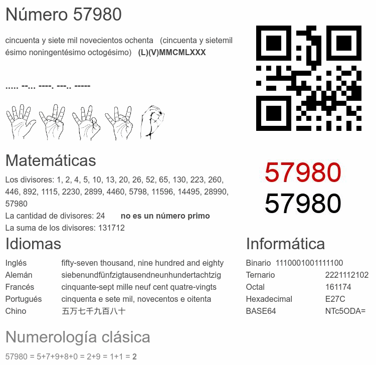 Curiosidades del número 57980