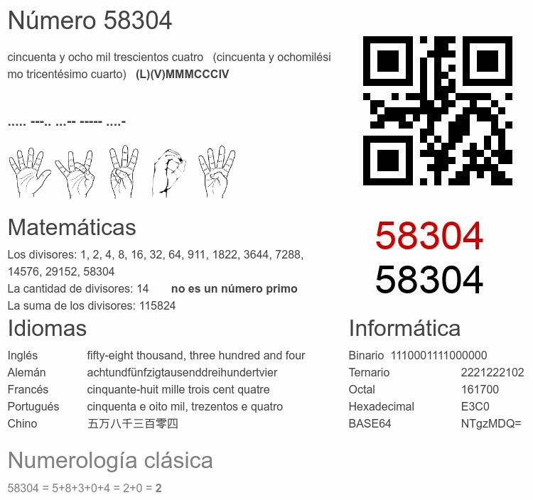 Curiosidades del número 58304