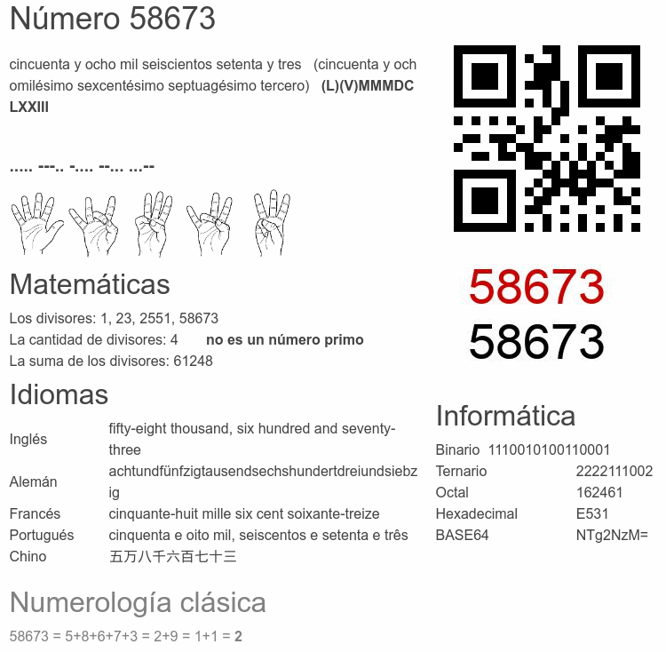 Curiosidades del número 58673