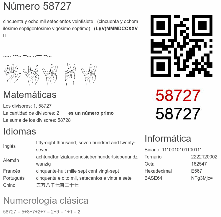 Curiosidades del número 58727