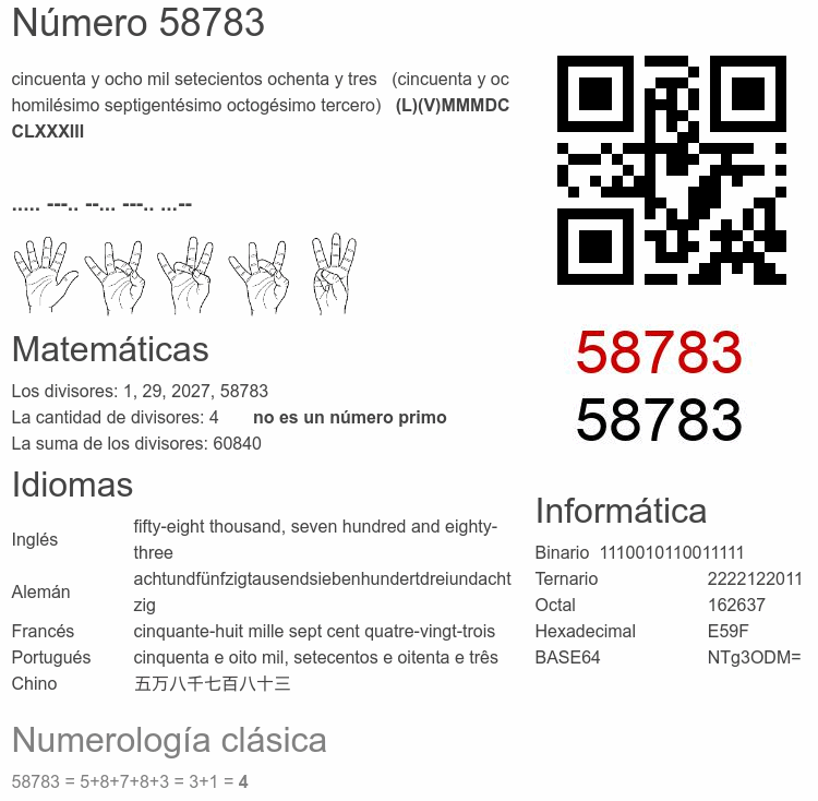 El número 58783 en Informática