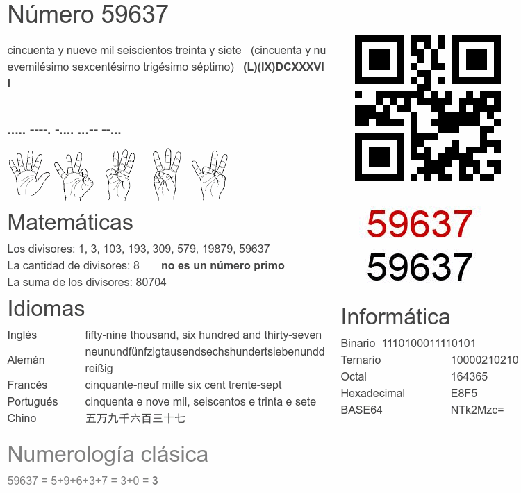 Curiosidades del número 59637
