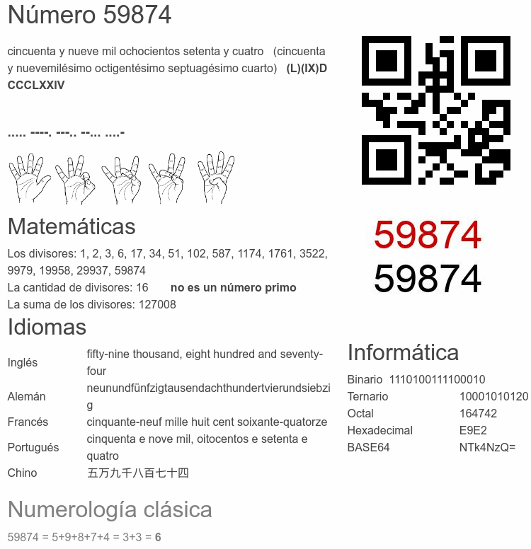 Curiosidades del número 59874