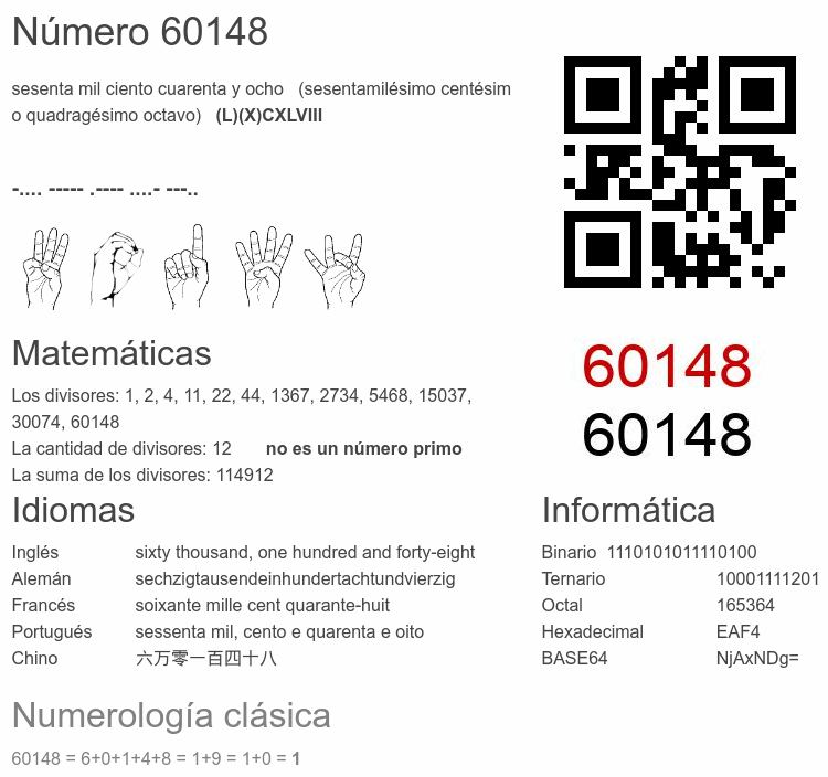 Curiosidades del número 60148