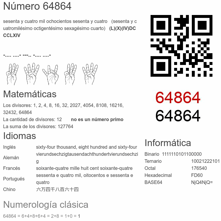 Curiosidades del número 64864