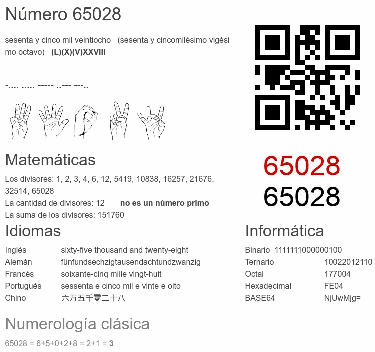 Curiosidades del número 65028