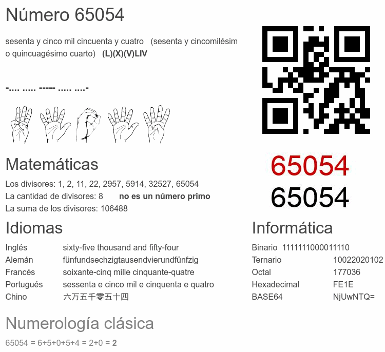 Curiosidades del número 65054
