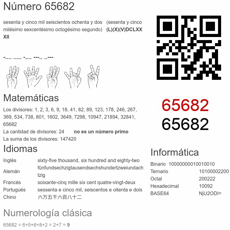 Curiosidades del número 65682