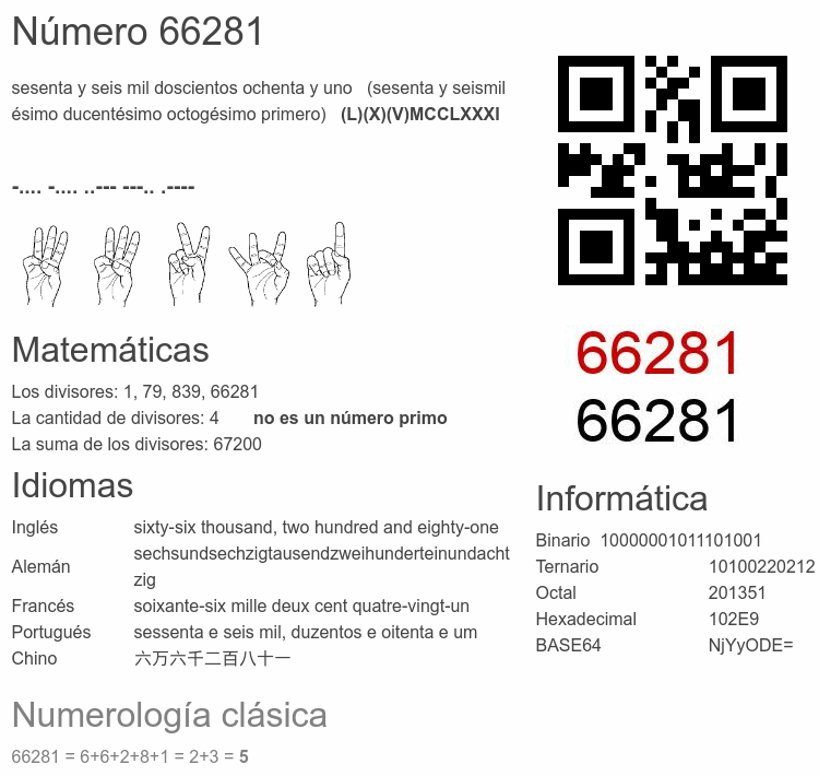 Curiosidades del número 66281