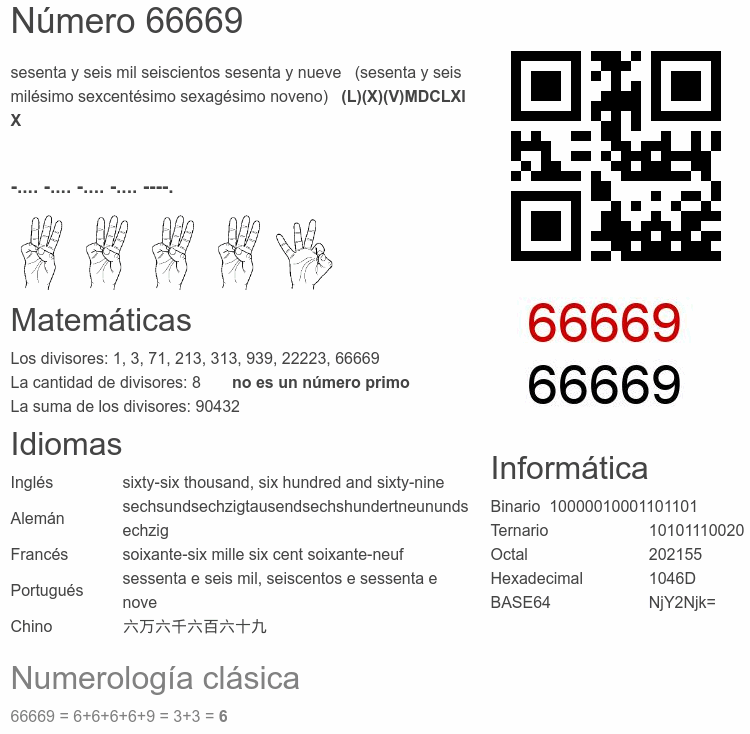 Curiosidades del número 66669