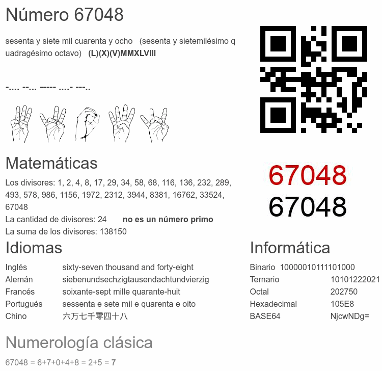 El número 67048 en Informática