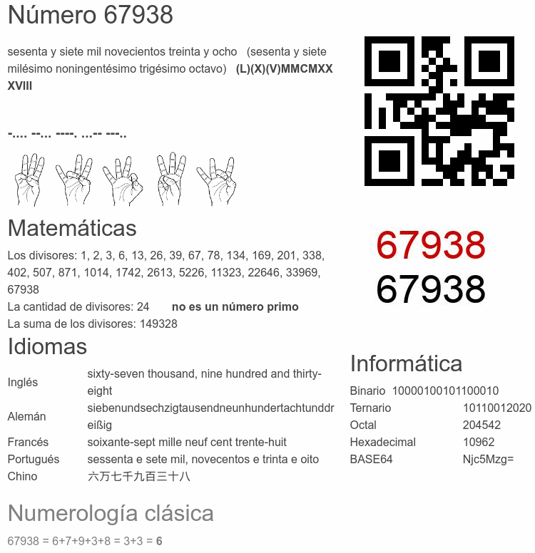 Curiosidades del número 67938