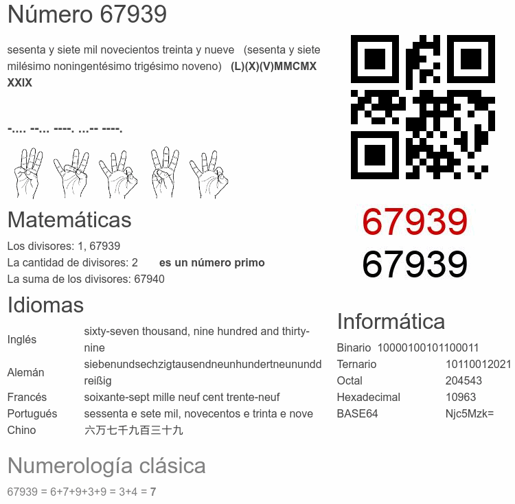 Curiosidades del número 67939