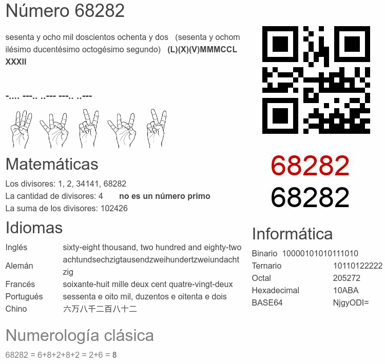 Curiosidades del número 68282