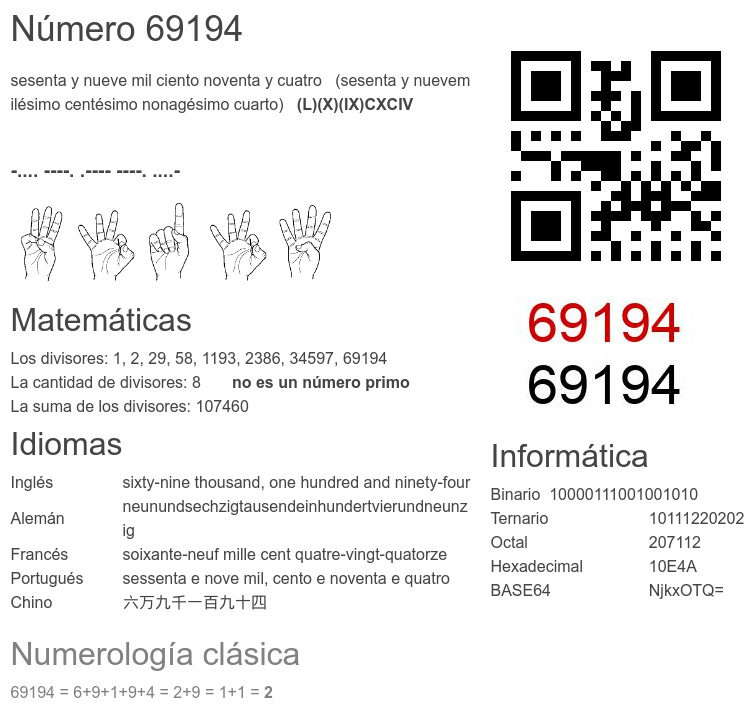 Curiosidades del número 69194