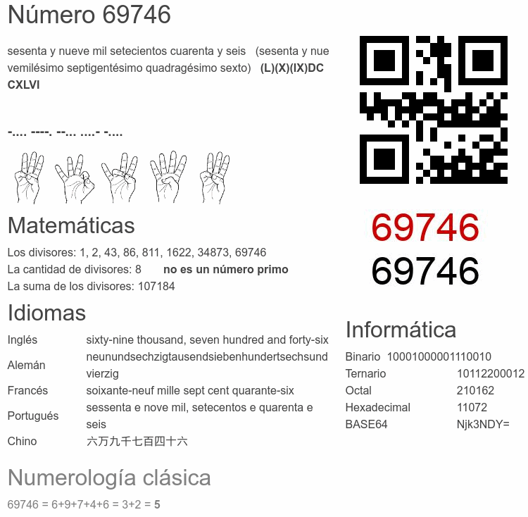 Curiosidades del número 69746