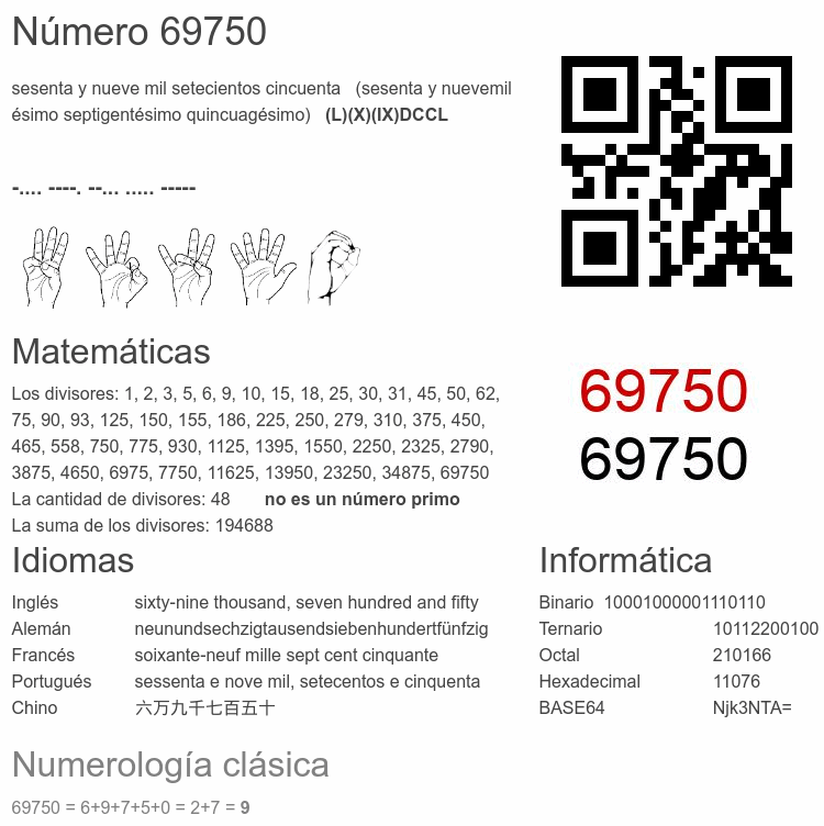 Curiosidades del número 69750