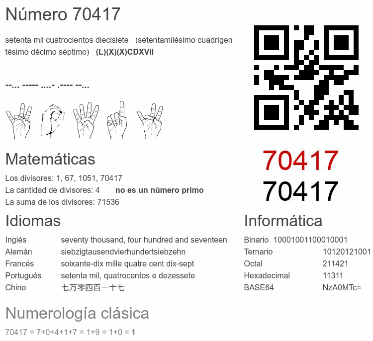 Curiosidades del número 70417
