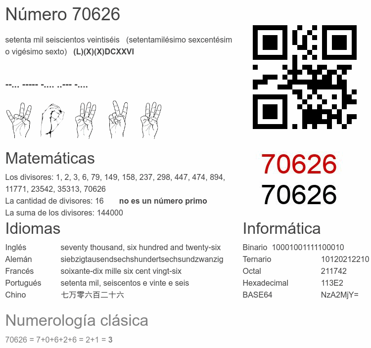 El número 70626 en Informática