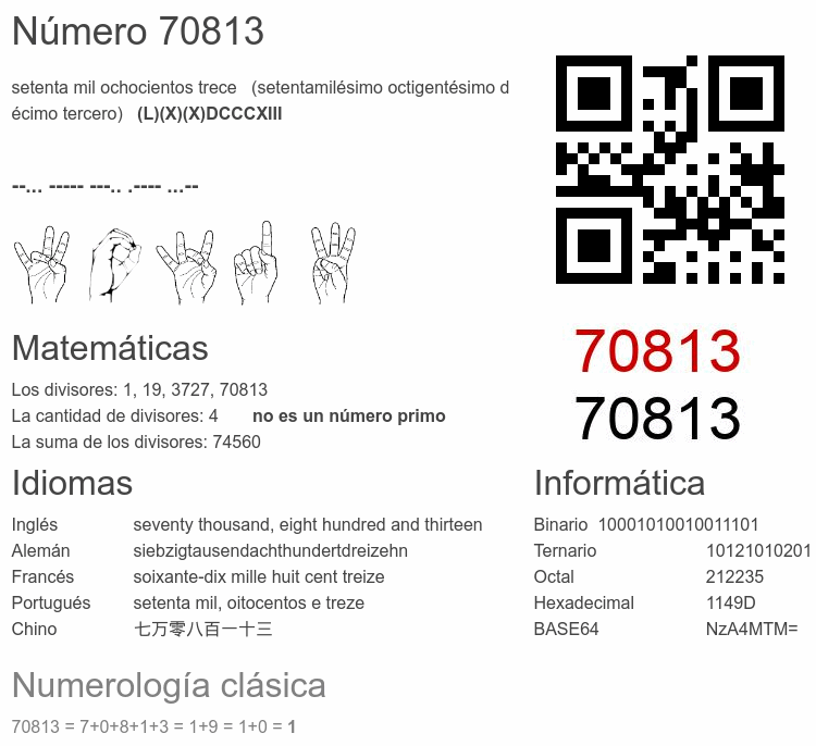 Curiosidades del número 70813