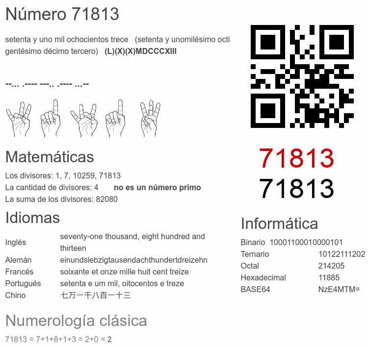Curiosidades del número 71813