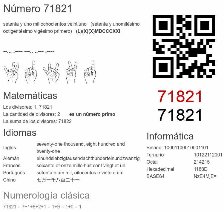 El número 71821 en Informática