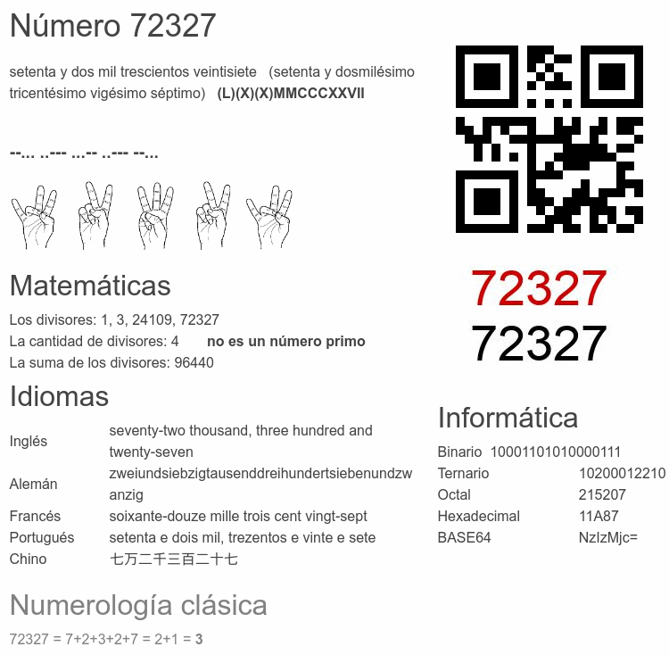 Curiosidades del número 72327