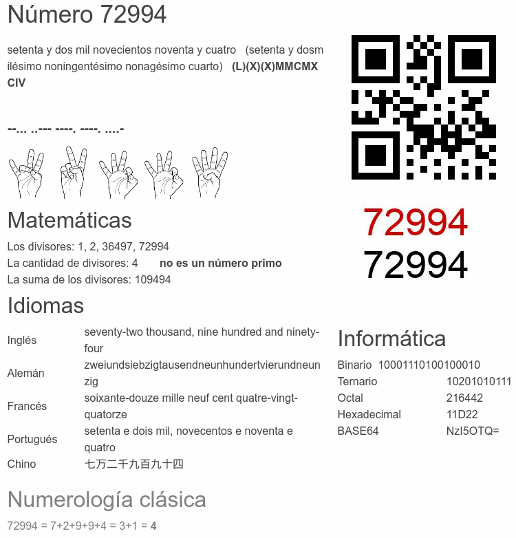 El número 72994 en Informática