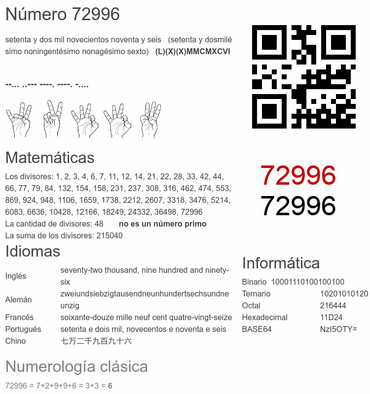 El número 72996 en Informática