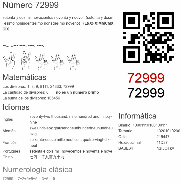 El número 72999 en Informática