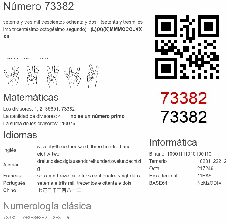 El número 73382 en Informática