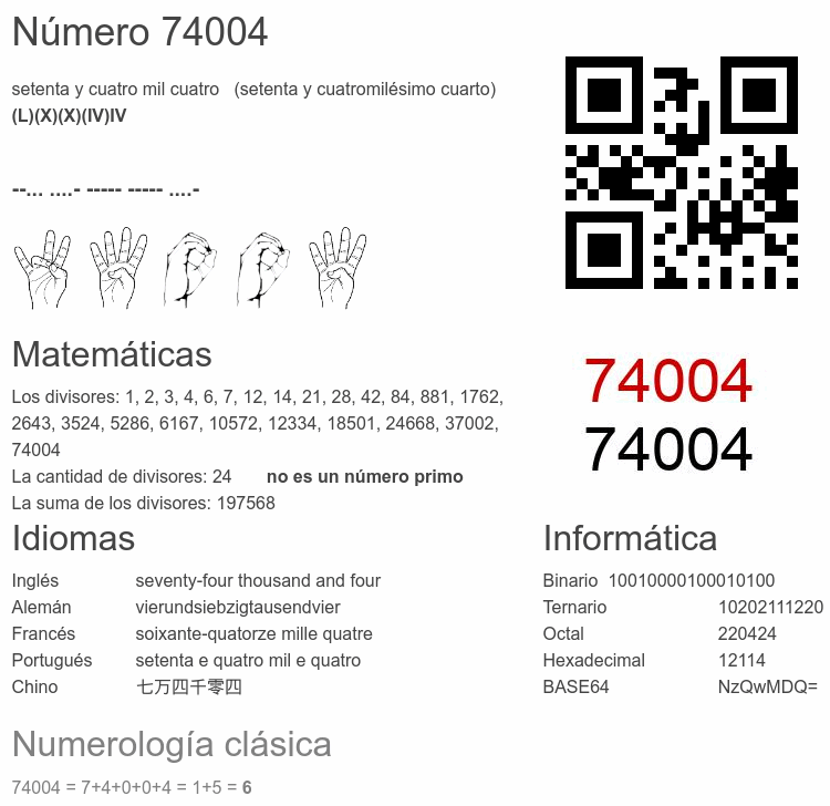 Curiosidades del número 74004