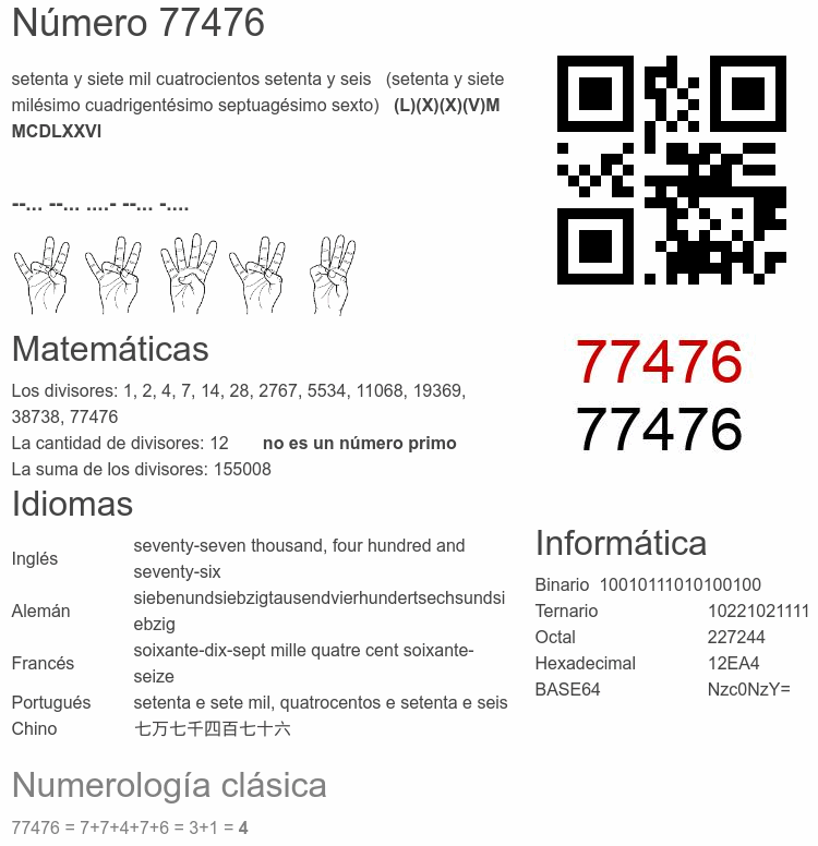 El número 77476 en Informática