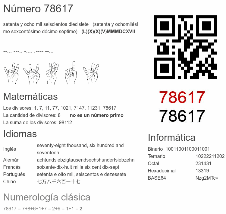 Curiosidades del número 78617