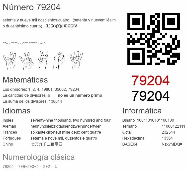 Si conoce algo interesante sobre el número 79204 o cualquier número natural (entero positivo), por favor escríbanos.Número 79 204 en otras unidades
