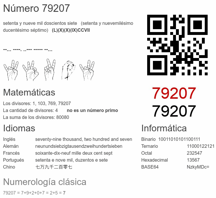 Si conoce algo interesante sobre el número 79207 o cualquier número natural (entero positivo), por favor escríbanos.Número 79 207 en otras unidades