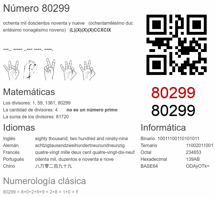 Curiosidades del número 80299