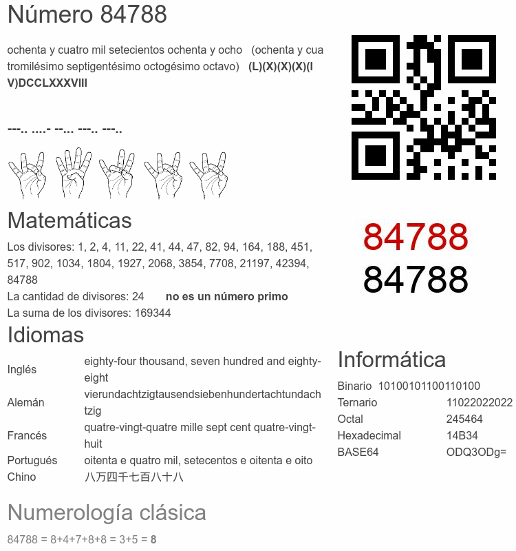 Curiosidades del número 84788
