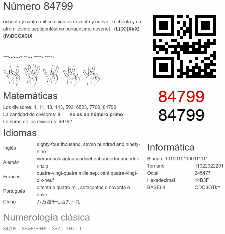 Curiosidades del número 84799