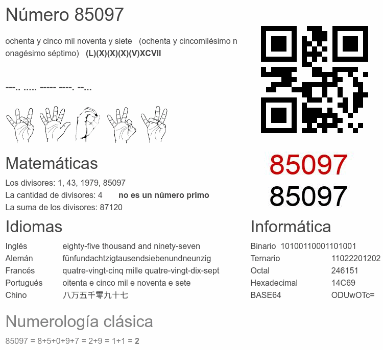 Curiosidades del número 85097